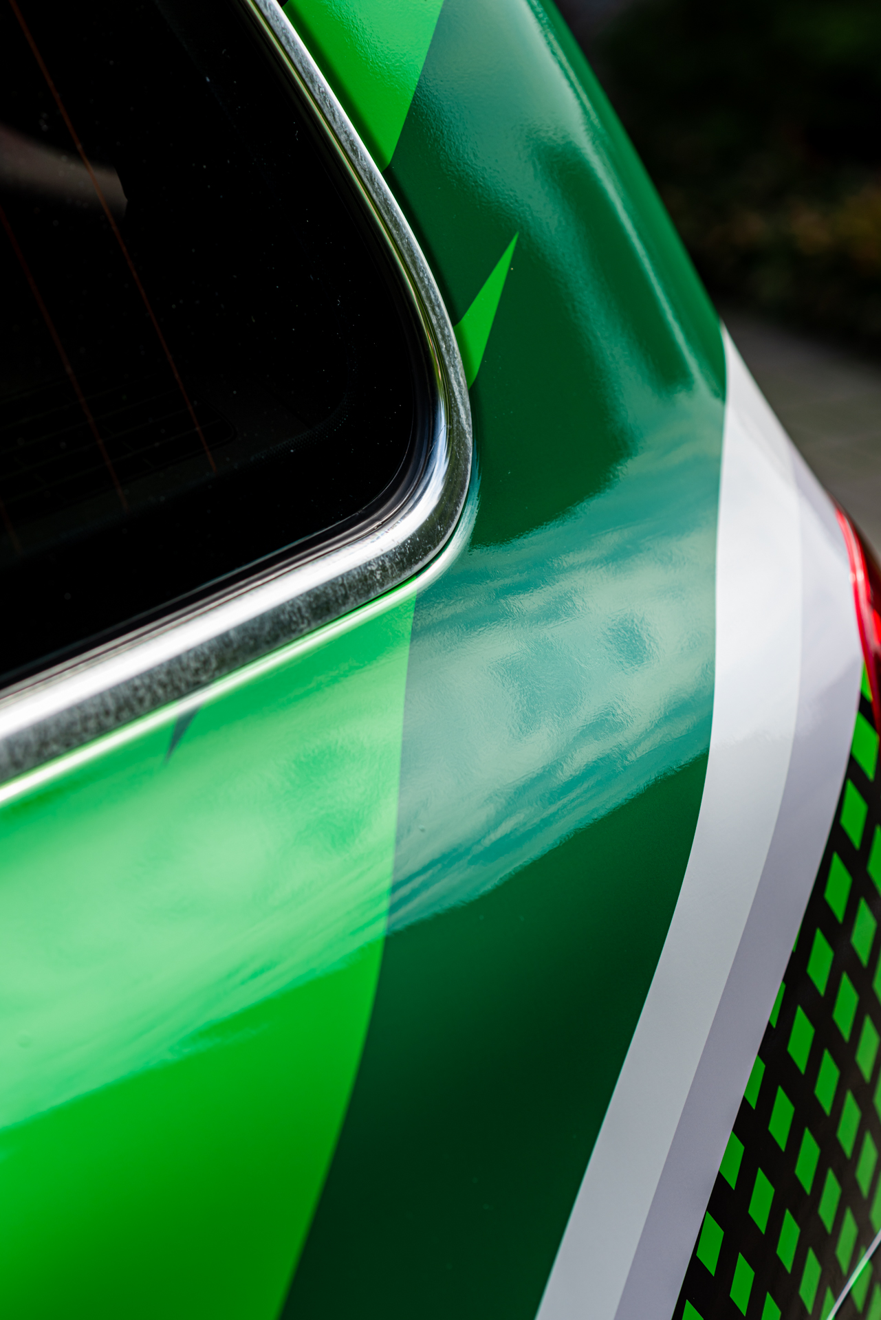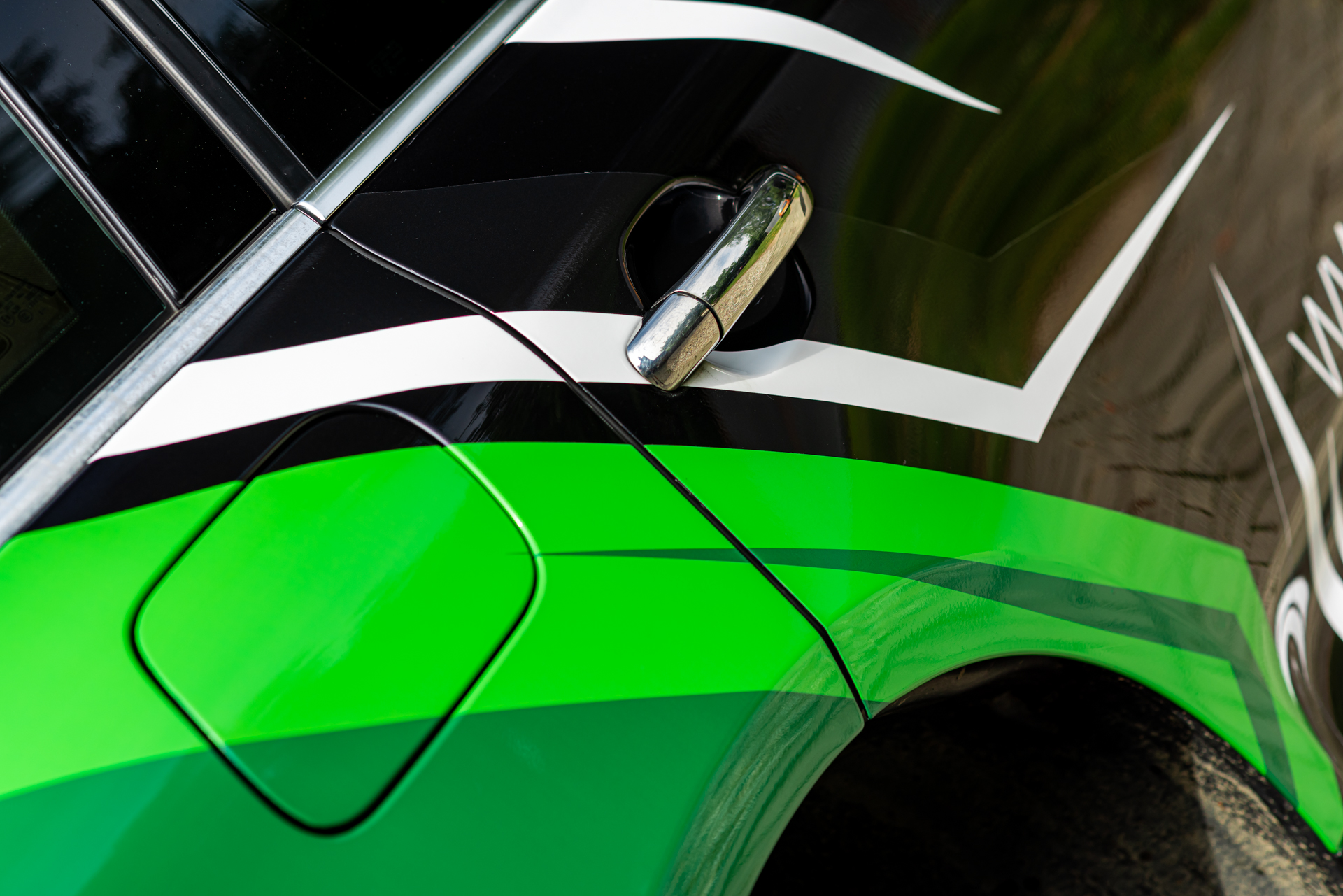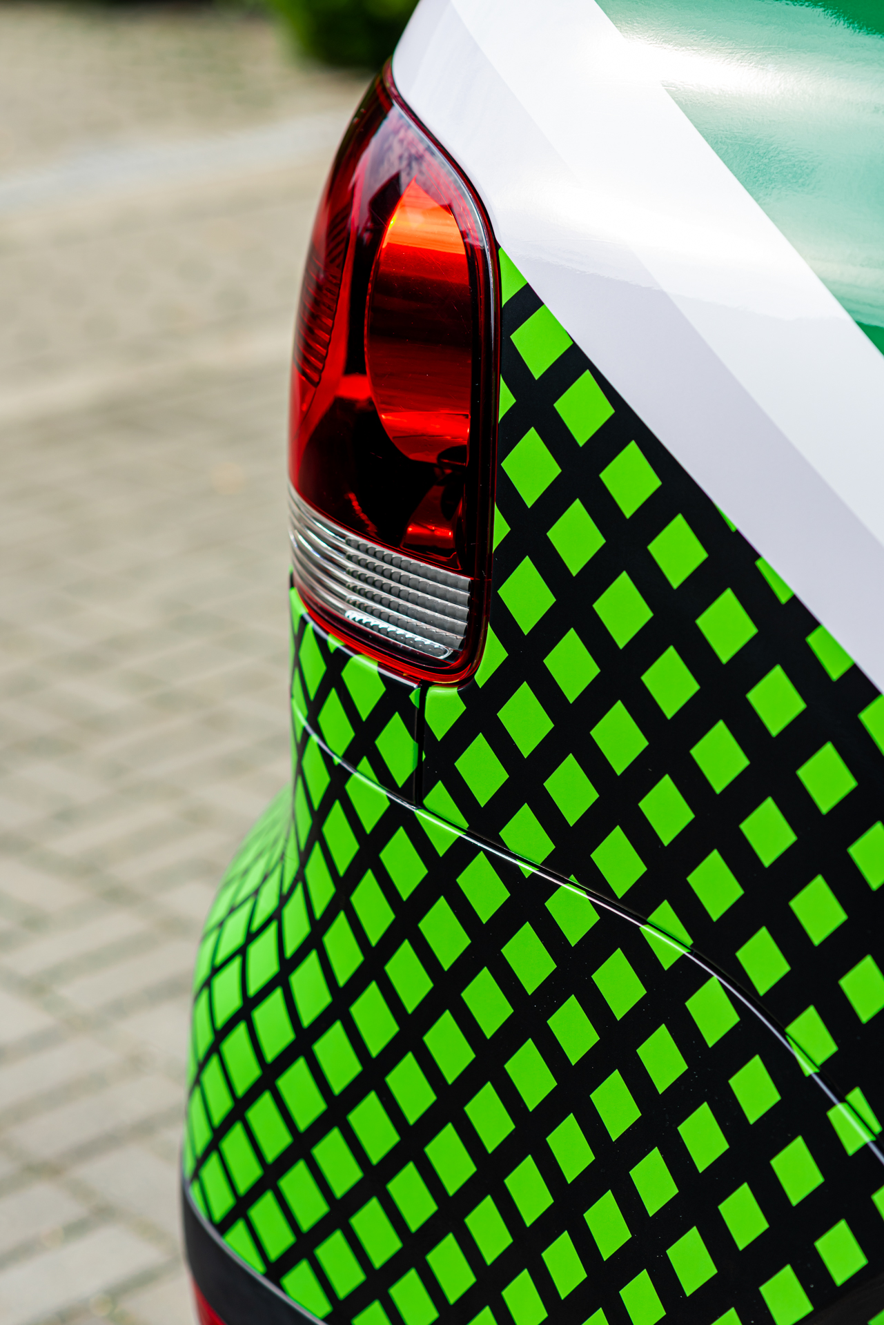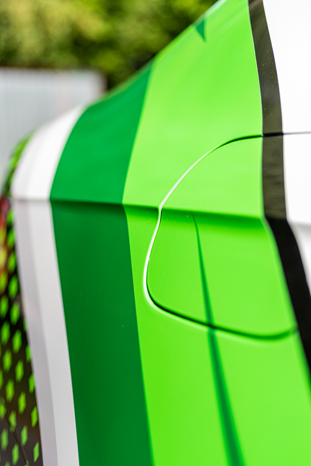 Do oklejenia zastosowaliśmy folię wylewaną 3M z laminatem w wysokim połysku. Charakter auta podkreśla dopasowana grafika.